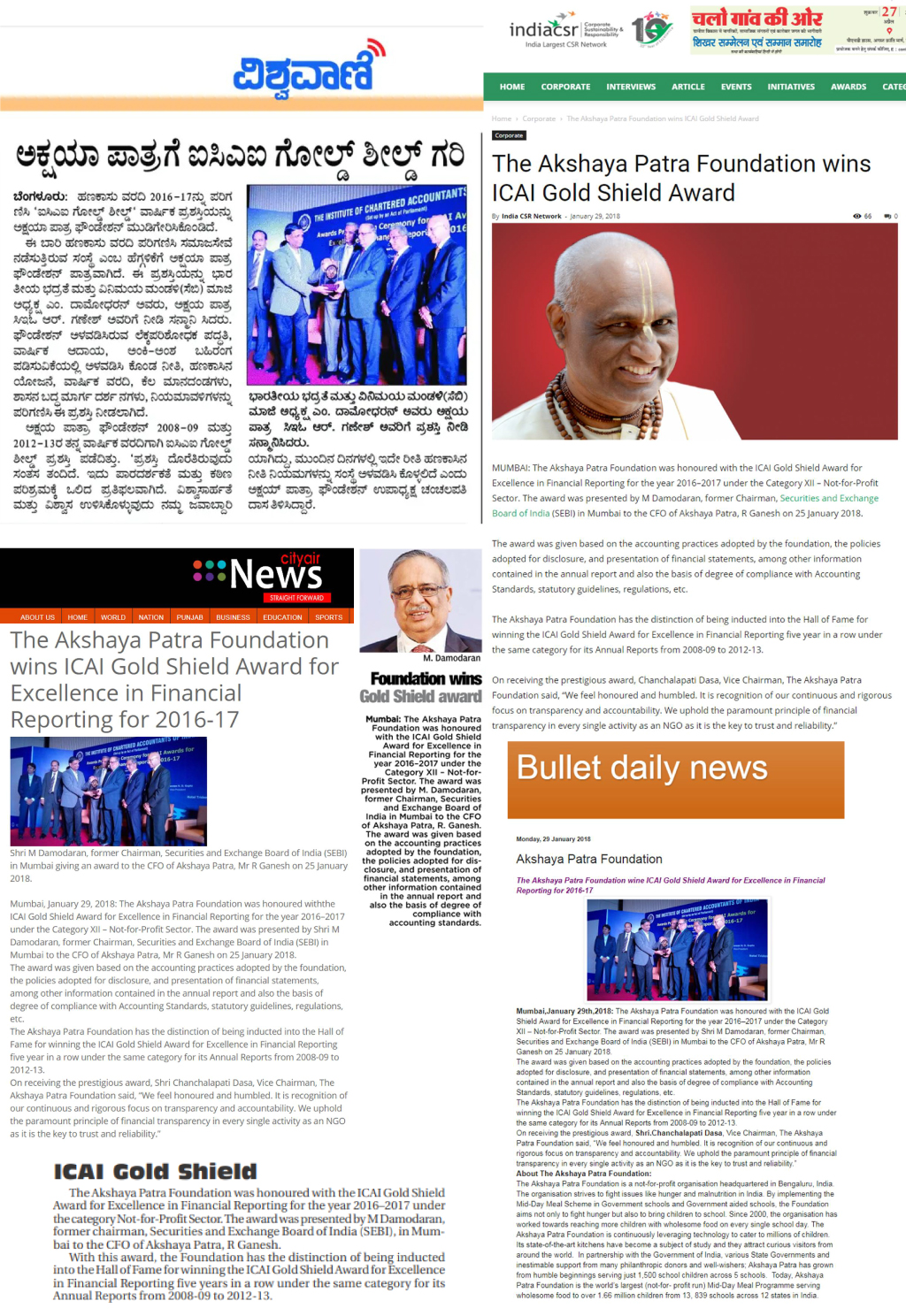 Akshaya Patra wins ICAI Gold Shield Award, 2016-17