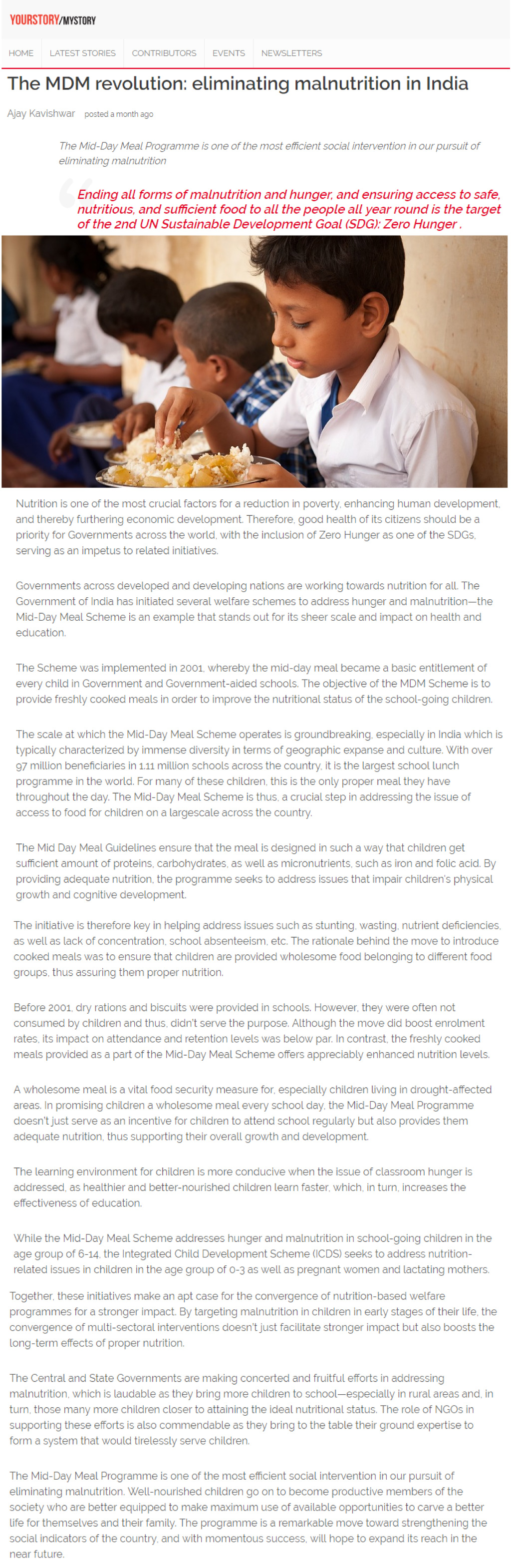 The MDM revolution: eliminating malnutrition in India